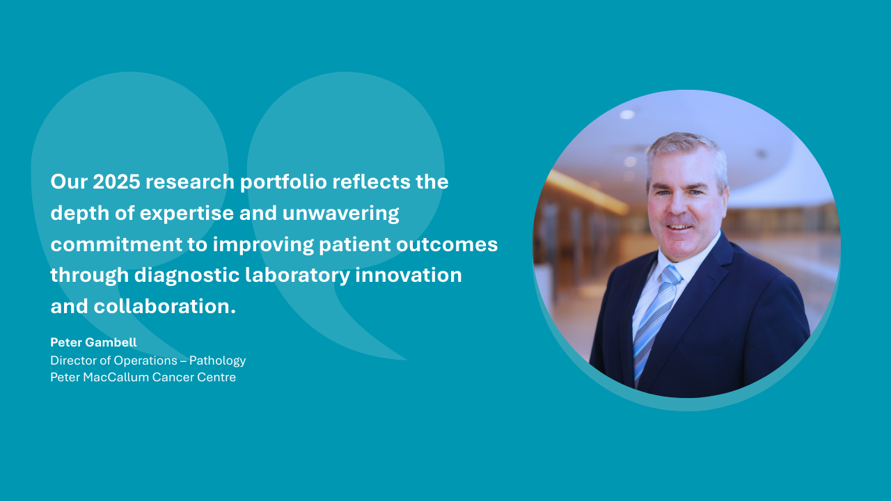 The Pathology Department, in partnership with its specialised clinical trial testing unit Nexomics and Australia’s largest molecular haematology service The Wilson Centre for Blood Cancer Genomics, has delivered an exceptional year of scientific achievement. With over 100 peer-reviewed publications, our research continues to shape the future of oncology worldwide, advancing precision medicine, molecular diagnostics, and AI-driven genomic analysis.